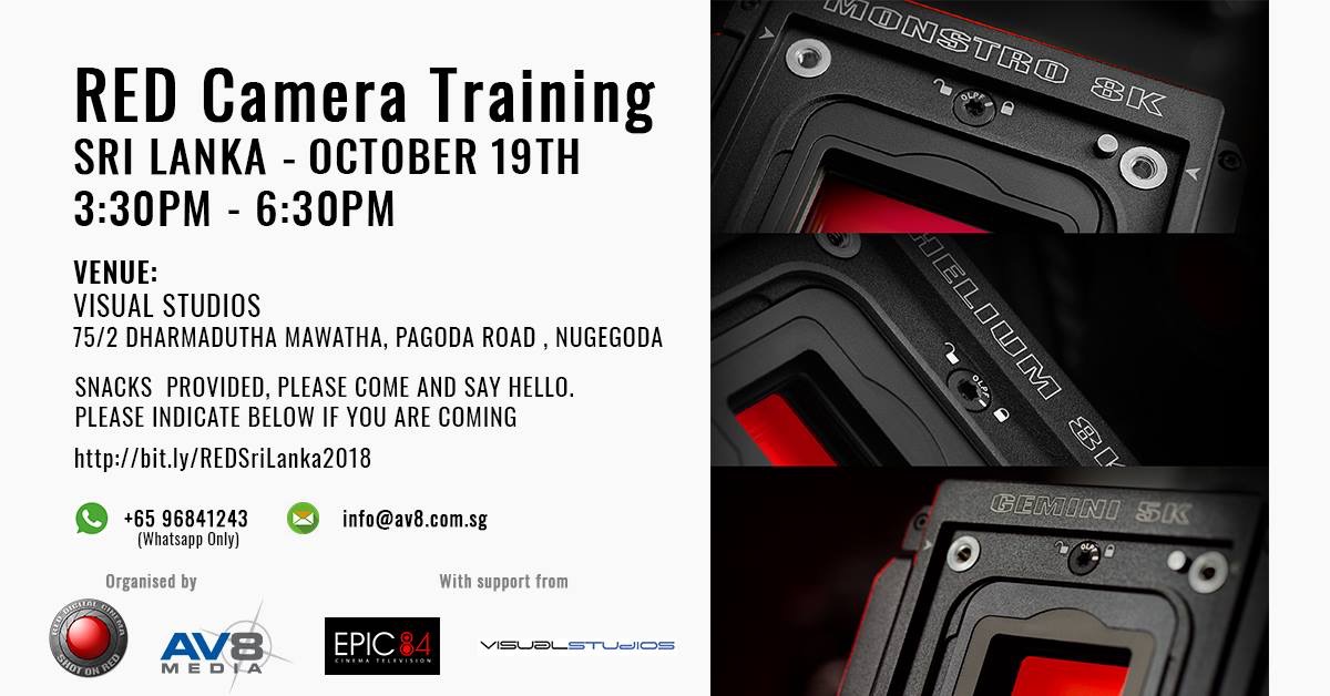 Red Camera Training Sri Lanka – October 19th 3.30 PM – 6.30 PM